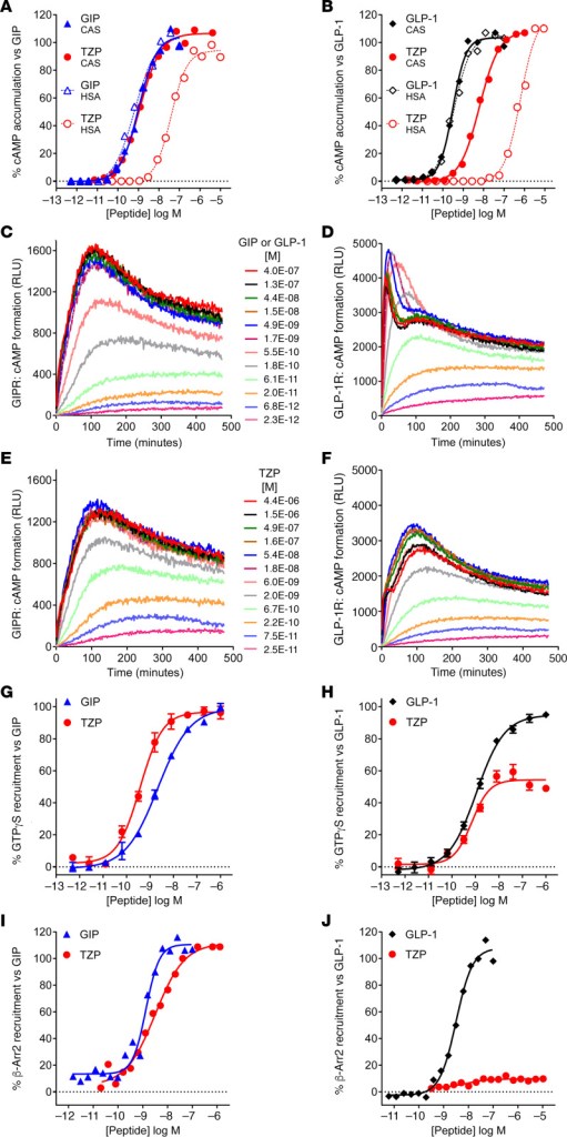 “Tirzepatide selectively engages cAMP signaling over β-arrestin recruitment at the GLP-1R may be of fundamental importance that beneficially impacts GLP-1R trafficking, thus augmenting cellular response. Indeed, others have reported that GLP-1R agonists possessing similar signaling bias are more effective than matched, unbiased agonists at controlling glucose and body weight in mice”