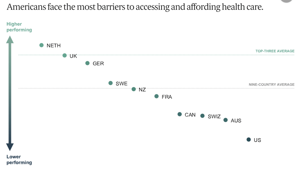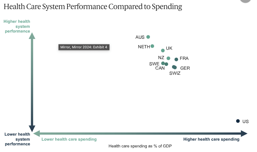 - Performance Gap: The U.S. ranks last in healthcare performance among wealthy countries, despite high spending.