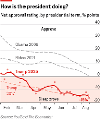 Recent polling shows that 52% to 58% of Americans disapprove of his job performance, with declining support for his policies, particularly among Republicans.